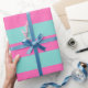 Papel De Presente Aqua Turquesa, Rosa Quente #2 XL Pré-Pia Stripe 1X