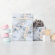 Papel De Presente Aquarela Azul Empoeirada Flores de Marfim Folhas R
