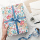 Papel De Presente Aquarela Florais em Rosa e Azul