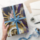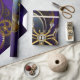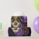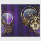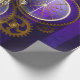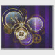 Aranha-do-galo feita de ouro e aço com relógios antigos decorados com engrenagens de ouro sobre fundo roxo, listrado, texturizado com lentes e engrenagens de latão. Estilo Steampunk.