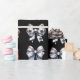 O papel de embrulho apresenta um fundo preto elegante, fornecendo um contraste ousado com os gráficos únicos das bolas esportivas transformadas em arcos de coquete. Cada bola — bolas de basquete, bolas de futebol, bolas de baseball e softball — foi criativamente reimaginada, com suas formas torcidas e curvas em formas delicadas de arco. As bordas das bolas se espalham como os loops de fita, enquanto seus padrões (como as manchas preto-e-branco da bola de futebol ou a laranja do basquete) permanecem visíveis, misturando os elementos esportivos com uma estética feminina e macia.