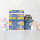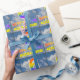 Este design de papel empolgante, divertido e vibrante, com tema de aniversário, apresenta um céu azul com um fundo de nuvens padrão, um grande número "6" e "FELIZ ANIVERSÁRIO", ambos tendo um espectro multicolorido do arco-íris inspirado em gradiente, e um nome personalizado. Um papel de embrulho divertido como este pode ser usado ao embrulhar presentes que são dados a alguém em comemoração do seu sexto aniversário. [~Z0000372]