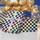 Arte abstrato digital de quadrados brancos e arco-íris em uma formação marcada.