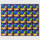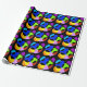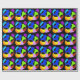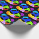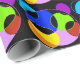 Design colorida e geométrica, intersetando círculos com cores arco-íris sobre fundo preto