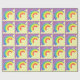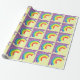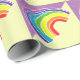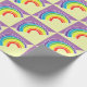 Grelha roxa e amarela com arco-íris coloridos e divertidos em papel de embrulho para decoração e ocasiões especiais.