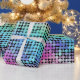 Um gradiente digital do arco-íris se reformando da escuridão. (Esta versão do design é dimensionada a 18" em cada repetição única, para o melhor ajustado dentro das dimensões de papel de embrulhamento.)
