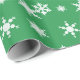 Fundo branco verde feminino, na moda, chique e moderno do verde do teste padrão dos flocos de neve com uma fita do arco do ouro personalizada com seus presentes conhecidos feitos sob encomenda ou presentes do monograma ou suas iniciais que caracterizam uma rotulação extravagante elegante e tradicional. Ideias do floco de neve do Natal para mulheres, meninas e adolescentes.