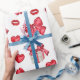 Este papel de embrulho de Dia de os namorados apresenta corações vermelhos, beijos e presentes de Namorados embrulhados com arcos vermelhos brilhantes. O presente perfeito para Dia de os namorados ou Natal.