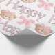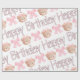 Papel De Presente Arcos Coquette e Urso de Teddy - Feliz Aniversário