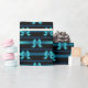 Aqui nós temos um papel de envolvimento bonito com um arco azul metálico sparkling e a listra azul profundo em um fundo colorido. Este papel está disponível em tamanhos múltiplos e é um fósforo a outros papéis de envolvimento, a lenços de papel, a bolsas do presente e a um cartão. Isto é certo fazer a uma adição perfeita a seus presentes esta época natalícia.
