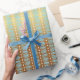 Papel De Presente Art Deco Aquamarine Blue e Douradas Stripes