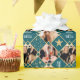 Wrap your gifts in Art Deco style with this custom photo wrapping paper! A chic design featuring a geometric pattern and three of your favorite photos. Personalize the template with the recipient's name and the birthday year. Perfect for milestone birthdays including 18th, 21st, 30th, 40th, 50th and 60th. This stylish gift wrap combines diamond shapes, stars and vintage style typography for a timeless and elegant look. It's a luxurious and unique way to celebrate a special birthday for Mom, Dad, family, and friends. This seamless pattern wrapping paper is printed on premium quality paper with your choice of a matte or glossy finish. Different length rolls are available from 6 feet - 60 feet. Printed colors: dark blue-green teal, gold and white.