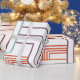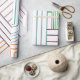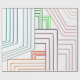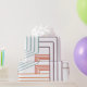 Este papel de embrulho tem um design de arte de linhas em roxo, rosa, laranja e azul.