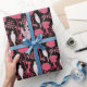 PAPEL DE PRESENTE ART DECO PINK FLOWERS, PARROGAS BRANCAS EM PRETO