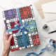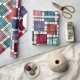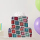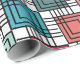 Este papel de embrulho tem um design de quadrados de arte deco feito de ângulos sobrepostos em tons retrorados de azul e rosa.