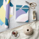 Eleve o seu presente com este papel de embrulho moderno com um padrão impressionante e sobreposto de crescente e arco abstratos. A composição dinâmica utiliza uma paleta de cores ousadas de azul profundo, lavanda, verde limão e azul claro contra elementos de creme e branco contrastantes. Perfeito para fazer qualquer presente se destacar, este design versátil e sofisticado é ideal para aniversários, feriados e eventos contemporâneos.