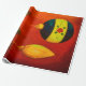 Linen Christmas Wrapping Paper está à venda. Bolas de Natal penduradas na árvore de Natal sobre pintura vermelha de fundo em papel de enrolamento.