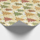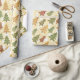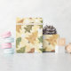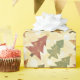 Papel festivo alegre de embalagem com um padrão de árvore de Natal. As cores são verduras macias e castanhos.