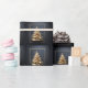 Um lindo padrão geométrico contínuo apresentando uma única árvore de Natal dourada emoldurada por uma fina borda dourada. A árvore está apoiada em um fundo gradiente azul escuro e tem pequenos flocos de neve espalhados ao seu redor. Este design tem uma aparência atemporal e elegante e é ideal tanto para uso comercial quanto pessoal. Adicione um toque de classe aos seus presentes nesta temporada festiva com esta ilustração personalizada. É ideal para eventos com tema de Natal, funções e presentes de fim de ano para clientes, amigos e familiares.