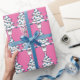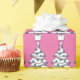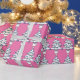 Uma ilustração de uma elegante árvore de Natal branca e chique com muitas bolas azuis penduradas em fundo rosa. Esta design é para pessoas que amam o Natal, dando presentes e presentes.