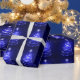 Design elegante com Árvore de Natal criativa e brilhante no fundo azul. Esse Papel De Quebra Incrível Faria Qualquer Presente Que Você Dasse Parecer Incrível E Especial.