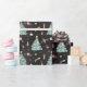 Um padrão de aquarela branca de Natal com árvores de Natal sobre fundo preto de quadro negro.