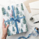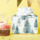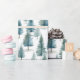 Esta simples, mas elegante design apresenta aquarelas árvores de Natal em um fundo branco de neve.