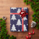Papel De Presente Árvore de Natal de Folha Azul e Silver Faux Elegan
