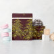 Árvore de natal de brilho ouro, primavera de natal, lua, estrelas em vermelho escuro em papel de embrulho. Você deve saber que consegue uma foto!