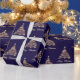 Papel De Presente Árvore de Natal Dourada no fundo do Marinho