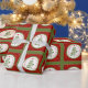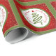Árvore de Natal bonita com papel de embrulhamento de borda de feriado vermelho, adicione seus nomes e saudações de época