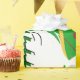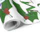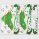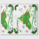 Esta design apresenta uma árvore de natal verde com fita vermelha, dourada e branca e bolas de Natal decorando a árvore. Neves e cavaleiros decoram esta design. "Feliz Natal" está impresso nesta design em verde e branco. Este papel de empacotamento está disponível em estilos sorvidos e fundos coloridos e bordas.