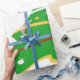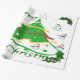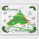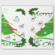 Esta design apresenta uma árvore de natal verde com fita vermelha, dourada e branca e bolas de Natal decorando a árvore. Neves e cavaleiros decoram esta design. "Feliz Natal" está impresso nesta design em verde e branco. Este papel de empacotamento está disponível em estilos sorvidos e fundos coloridos e bordas.
