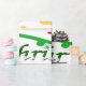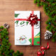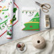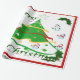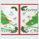 Esta design apresenta uma árvore de natal verde com fita vermelha, dourada e branca e bolas de Natal decorando a árvore. Neves e cavaleiros decoram esta design. O "Feliz Natal" está impresso nesta design, em verde e branco, e também é uma fronteira vermelha. Este papel de empacotamento está disponível em estilos sorvidos e fundos coloridos e bordas.