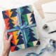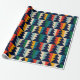 Adicione um toque vibrante aos presentes de Natal com este único papel de embrulho com linhas de árvores de Natal pretas alinhadas horizontalmente sobre um pano de fundo de faixas verticais em amarelo, verde, vermelho e azul-céu. Cada árvore é meticulosamente colocada lado a lado em linhas perfeitamente espaçadas, criando um olhar moderno, na moda, que é festivo e atraente para os olhos. Com 30 polegadas por 6 pés, este papel de embrulho é perfeito para qualquer tamanho de presente, fazer ideal para adicionar uma apresentação alegre e colorida aos seus presentes neste feriado.