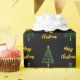 Um papel simples e moderno de embrulho de presente de Natal com um padrão de árvore de natal verde giro a preto com dourado.
