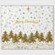Papel De Presente Árvore de Natal pouco Dourada, estrelas, neve