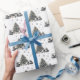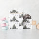 Celebre a temporada com este elegante papel de embrulho de árvore de Natal com um padrão repetitivo de uma sofisticada árvore de Natal em aquarela preta e branca. Cada árvore é sutilmente acentuada com um leve tom verde e cercada por presentes e delicados flocos de neve caindo, dando ao design um toque festivo e refinado.