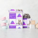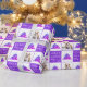 Papel de embrulho de foto de árvore de Natal roxa com tipografia de gato fofo. Fundo roxo e branco com flocos de neve e uma árvore de Natal colorida simples. Tipografia branca Alegre, Feliz, Jovial. O design tem uma foto personalizada de um cachorrinho - insira a foto do seu cachorro favorito ou de qualquer outro animal de estimação no modelo e faça seu presente de Natal único e pessoal.
