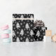 Este giro preto e branco rolo de papel de embrulho de Natal, apresenta uma árvore de Natal e um padrão de flocos de neve.