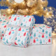 Papel de embrulho de Natal bonito e moderno, que apresenta um padrão de árvore de Natal em azul, vermelho e rosa sobre o fundo branco, no estilo simples nórdico. Personalize facilmente o texto. - Kate Eden Art