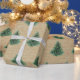 Papel De Presente Árvore Verde de Pinheiros de Natal Kraft Watercolo