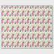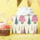 Papel de embrulho de Natal com árvores de Natal angulares e abstratas em rosa, verde e dourado.
