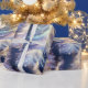Papel De Presente Árvores Azuis e Brancas Natal Moderno
