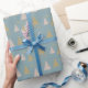 Papel De Presente Árvores de Natal Brilhantes Douradas da Cinza Azul