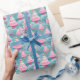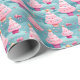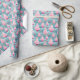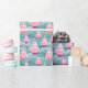 Adicione diversão e capricho aos seus presentes de Natal com este papel de embrulho com árvores de Natal de cupcakes pastéis. Cada cupcake é em tons de rosa com uma estrela de doce no topo contra um fundo azul claro.