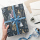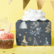 Papel De Presente Árvores de Natal Douradas e brancas em fundo preto
