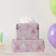 Papel De Presente Árvores de Natal Doves Flocos de Neve Rosa Natal