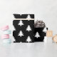 Papel de enrolamento mostrado a preto com um impressão de árvores de natal brancas. Personalize este papel ou apenas o comprar como está.
