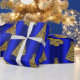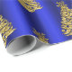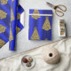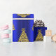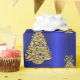 Um papel de embrulho de Natal azul, colorido e decorativo, com um padrão de árvores de Natal reluzentes e ouros sobre um fundo azul metálico, para acrescentar um toque sofisticado e elegante aos presentes de Natal nesta época de Natal. (Notas do designer: há também adesivos correspondentes, caixa de presente, saco de presente, etiqueta de presente, envelope, fita e papel de tecido com este design, basta clicar no link 'Disponível em outros Produtos' abaixo para verificá-los).